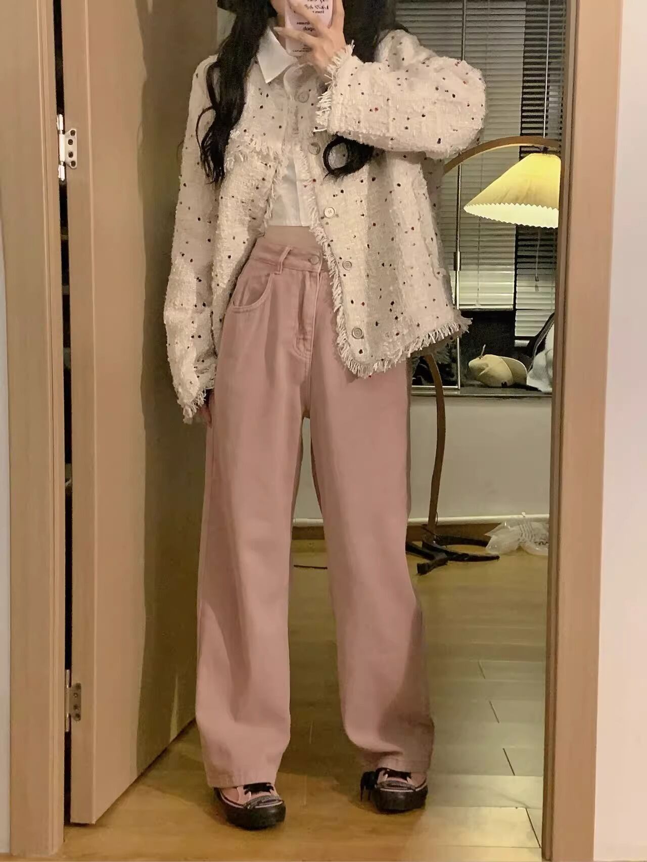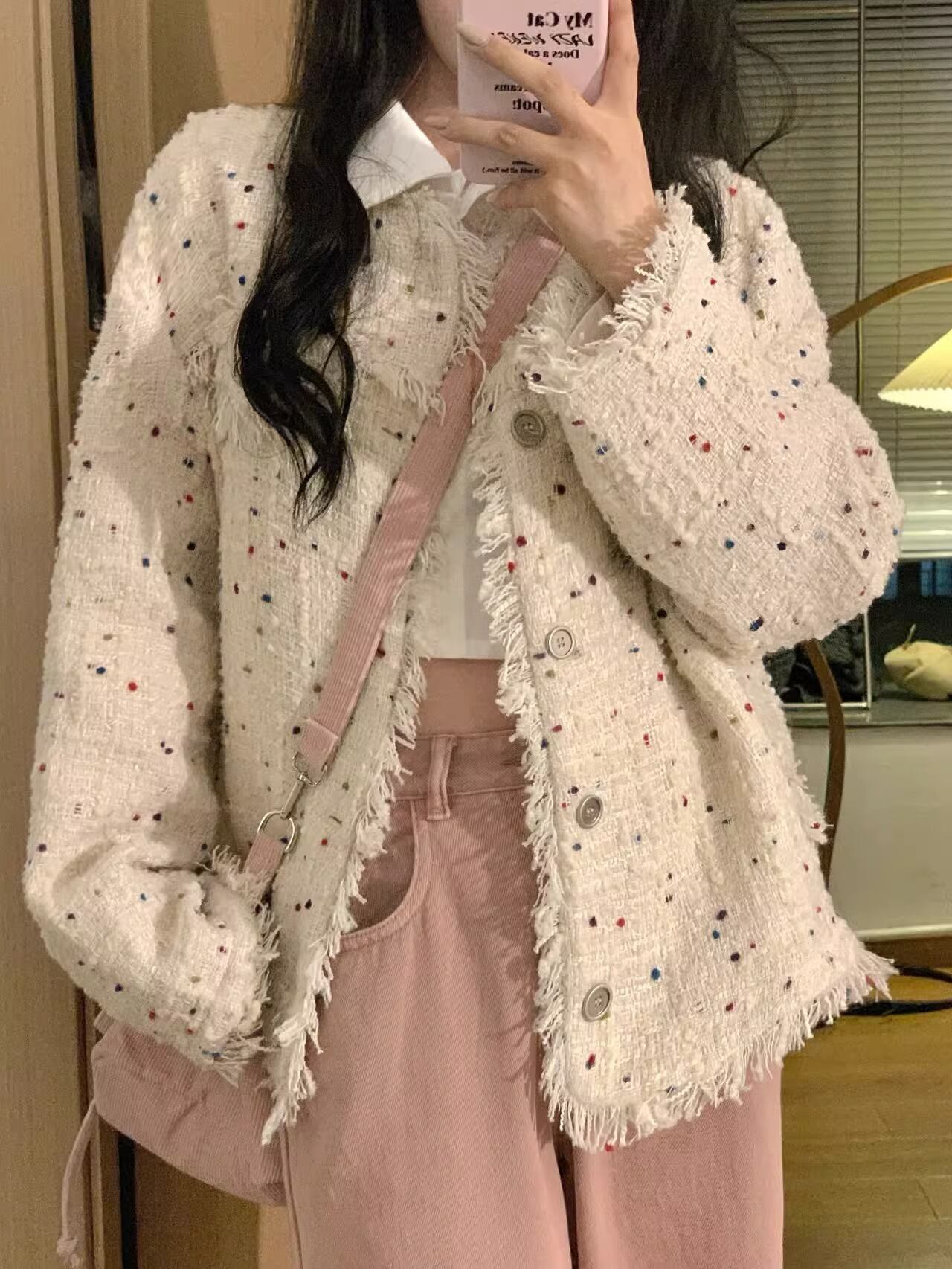 Tel カーディガンツイードジャケットトップ Chaquetas ショートポルカドットコート Ropa Jaquetas スタイルウール服シック