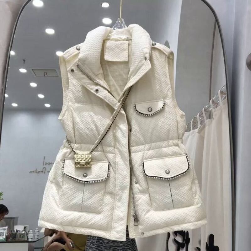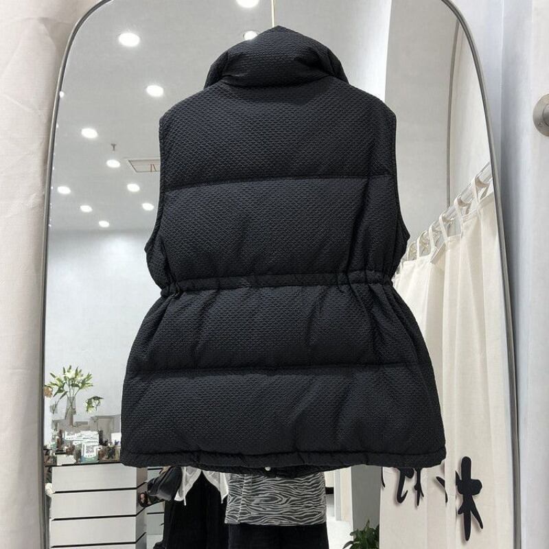 パーカー春秋オーバーサイズキルティングコットン黒チョッキターンダウン襟ベストジップジャケット Chaleco ブラック スプリング 春物 オータム 秋物