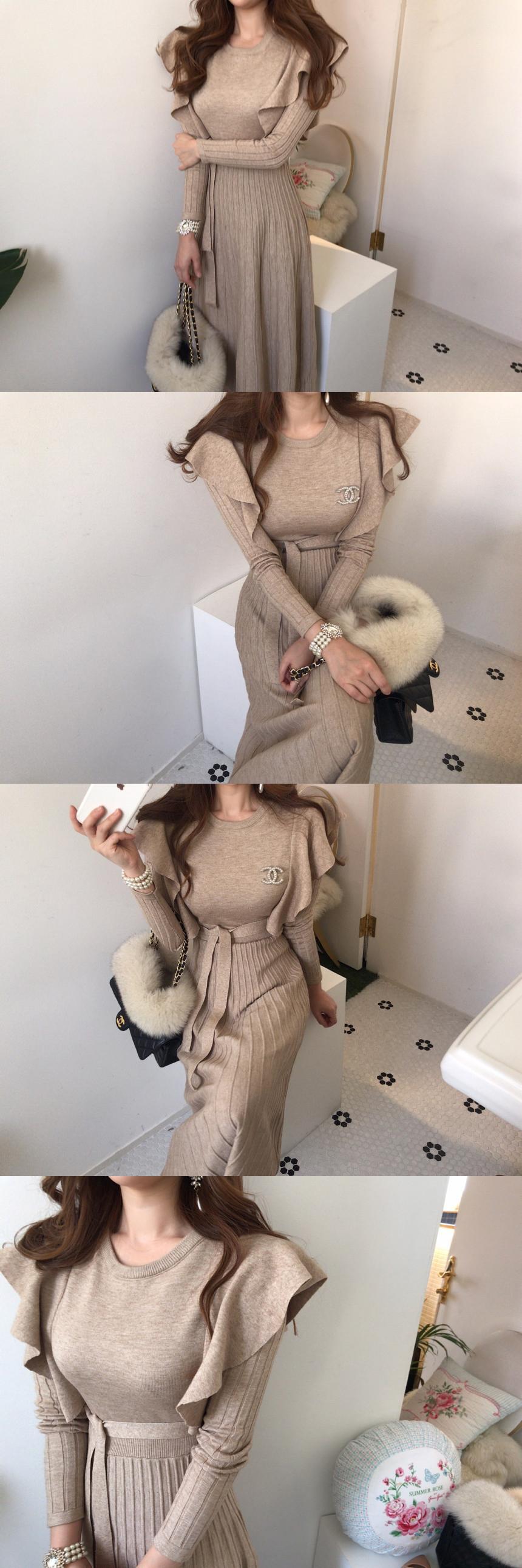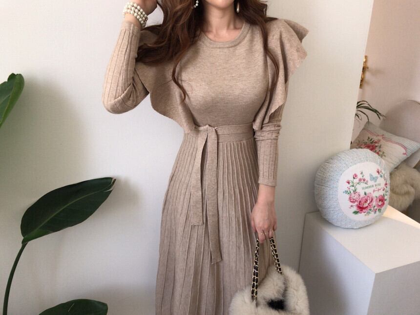 フレンチフリルニットドレス Vestidos 長袖レースアップウエスト黒セータードレス Feminino ボディコンレトロ Y2k マキシドレス ロング ブラック