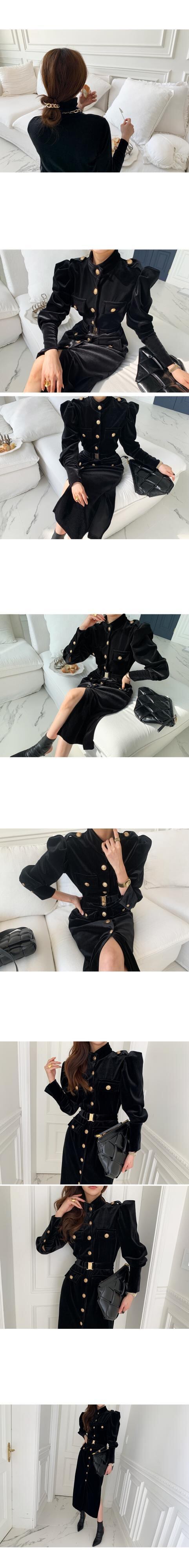 Vestidos デエスパーティードレスマキシ Y2k スタンドカラーシックシングルブレストウエスト黒ベルベットドレスローブ ブラック