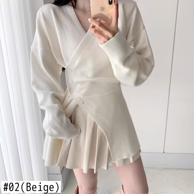 セーターサイドボタン V ネックトップス不規則特大セーターセーターデ黒プルオーバーニットセーター ブラック Vネック