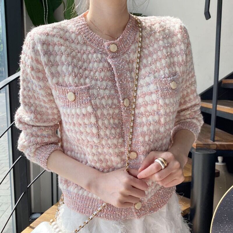 ソフトクロップピンクカーディガンプル甘い O ネックセーター春セーターコートニットトップ 大人ガーリー スウィート キュート カジュアル スプリング 春物 Oネック