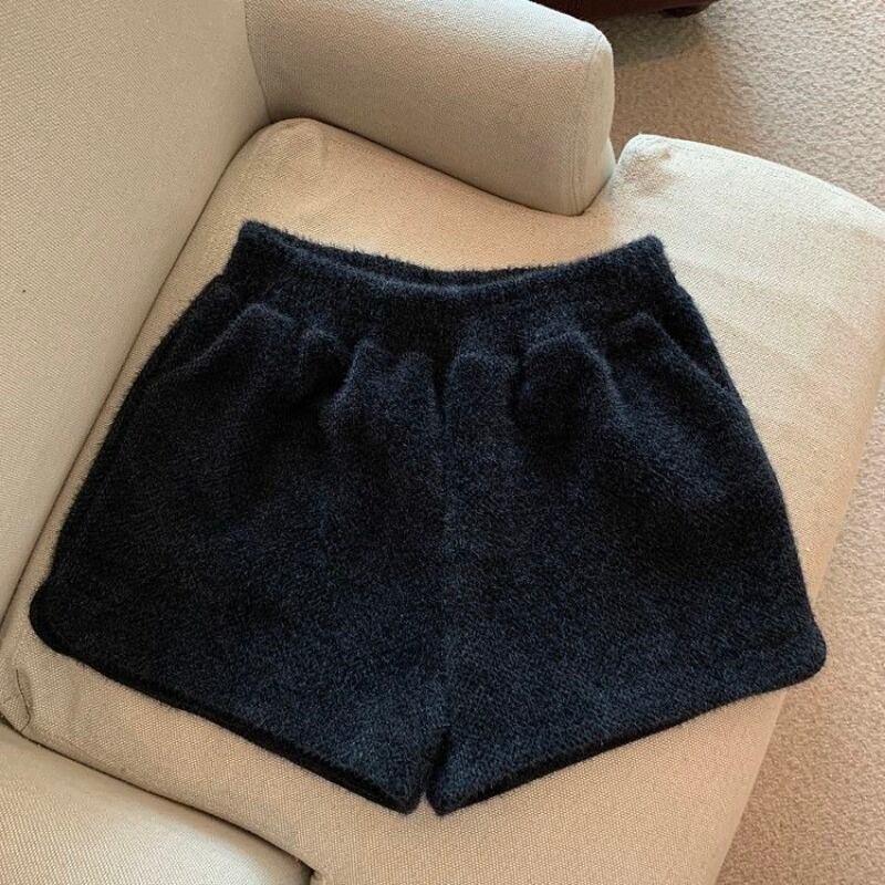 ワイドレッグ ブラック ショート ブーティ ウエスト ミンク カシミア ショーツ Feminino Pantalones Cortos De Y2k ボトム ブルマー ワイドパンツ
