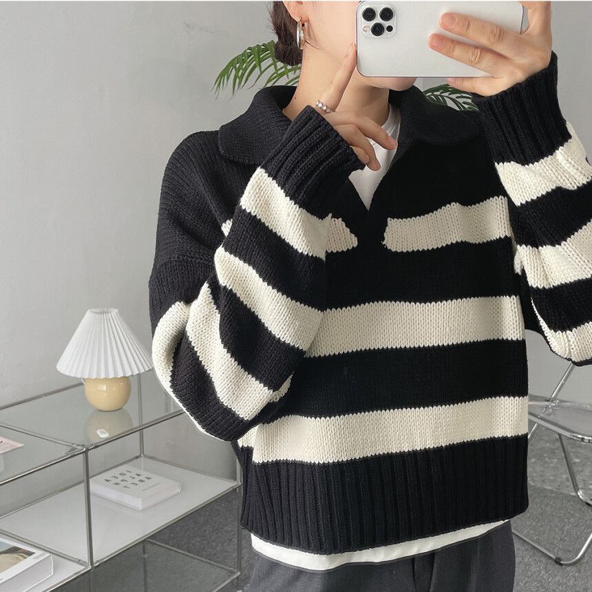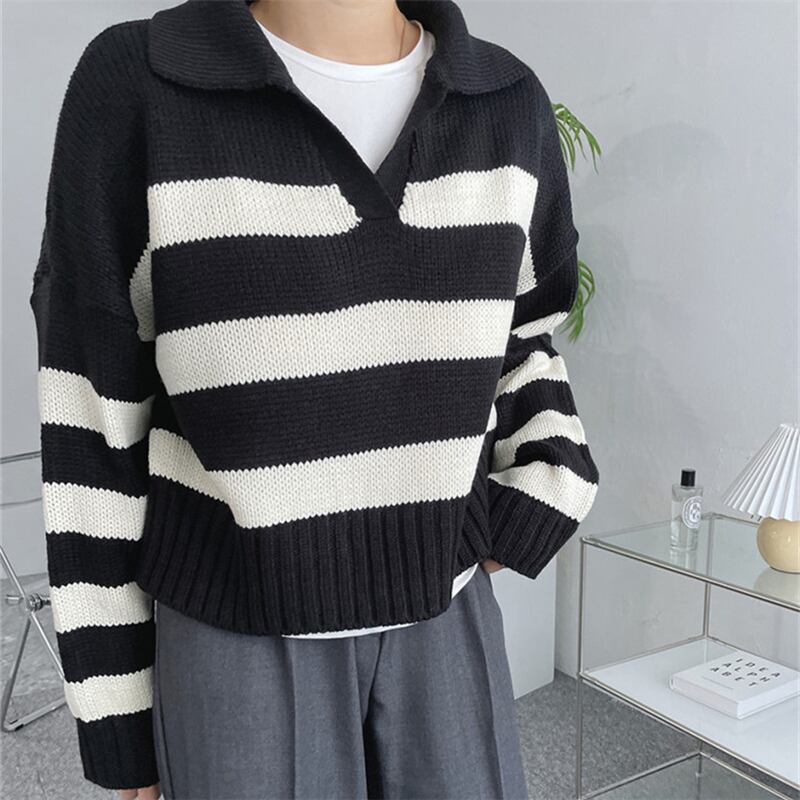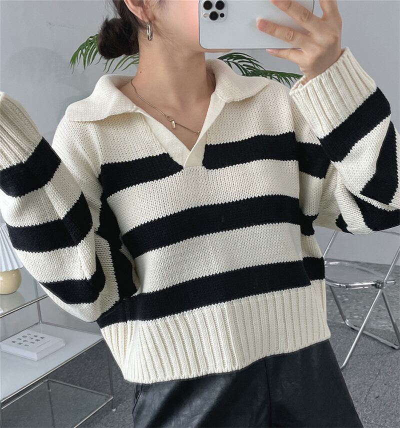コントラストカラープルオーバーストライプセータールーズトップスセーターデ特大セーター Y2k ニットグランジジャンパー