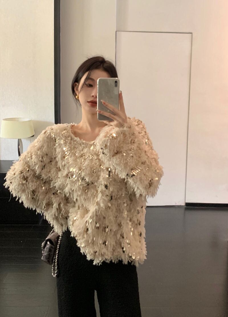 長袖トップ Y2k 服セーター特大セータージャンパープルオーバー V ネック甘いスパンコールセーター ロング 大人ガーリー スウィート キュート カジュアル Vネック