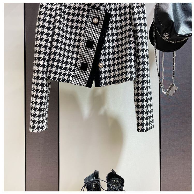 キルティング コート Jaqueta スタンドカラー 千鳥格子ジャケット Y2k ウール テーラード ブレンド Chaquetas レッド