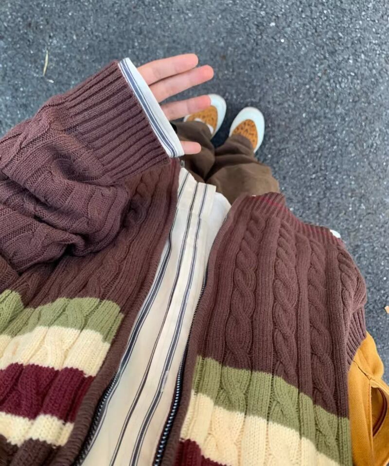 Y2k 美的電話ニットカーディガン春オーバーサイズルーズコントラストセータージッパー原宿カーディガン かわいい スプリング 春物