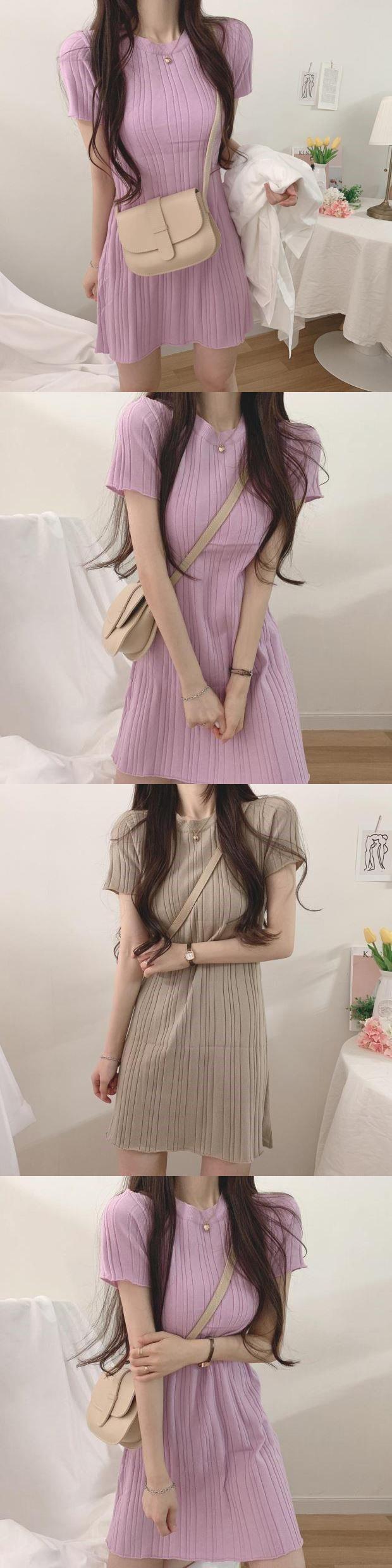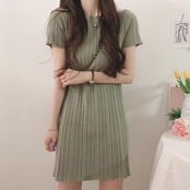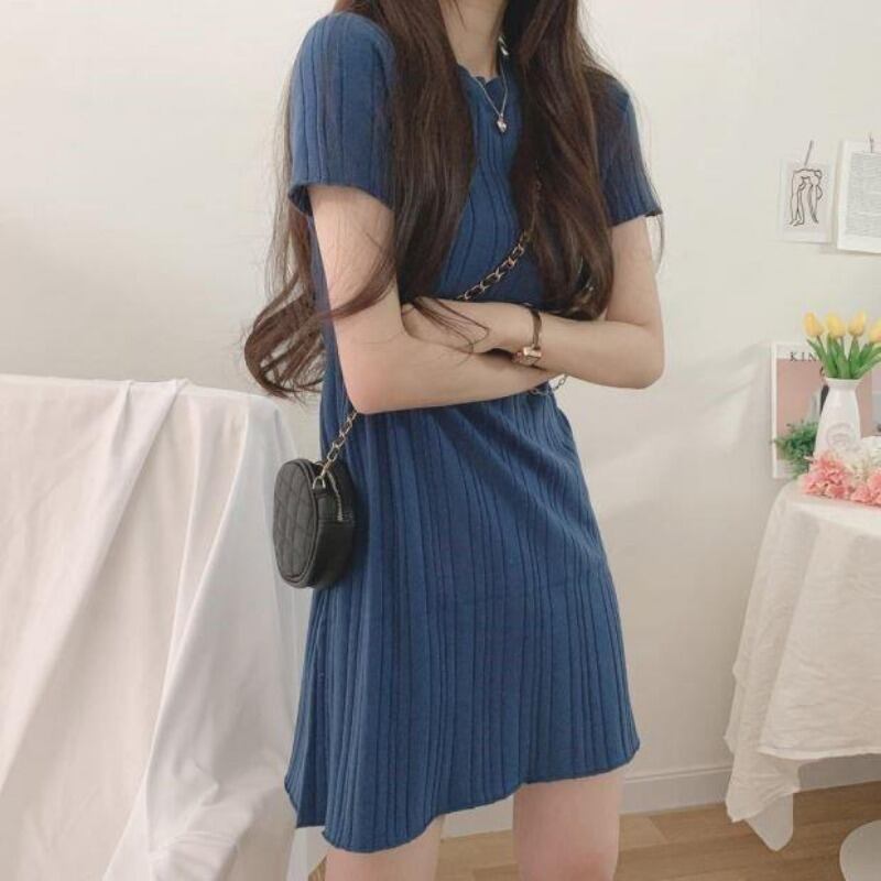 ルーズ半袖ニットドレスソリッドカラースタイル Vestidos es ミニニット服シック ショート ハーフスリーブ
