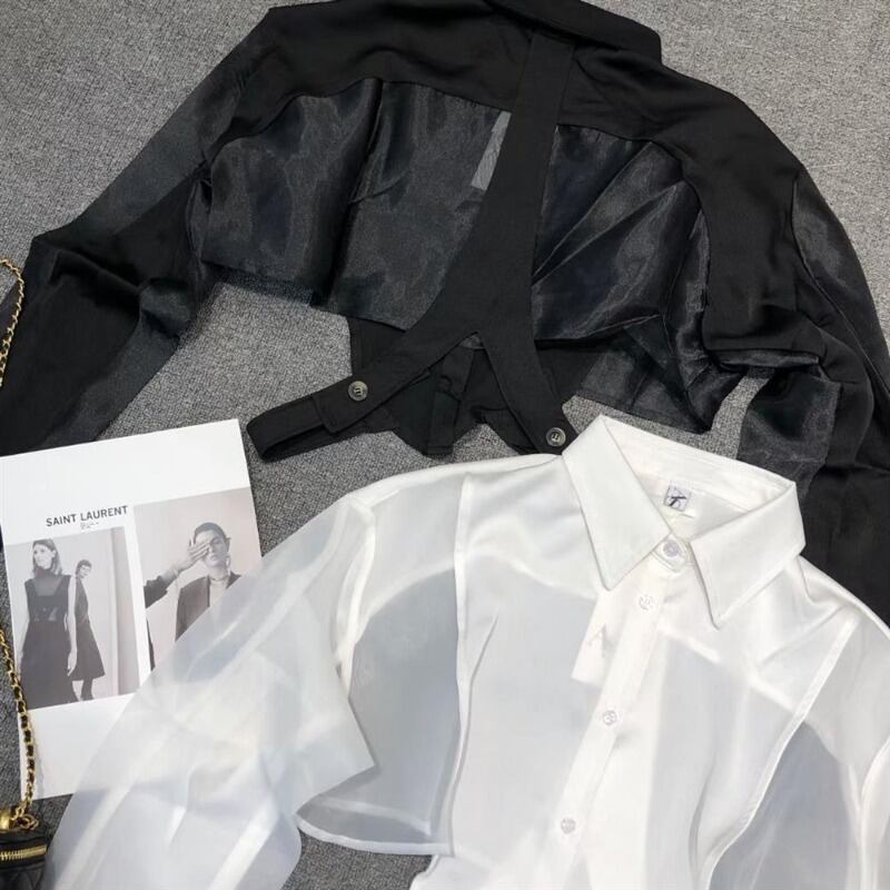 シャツ日焼け防止クロップトップス薄手ルーズシックセクシー女子オルストリートカミーサオールマッチ美的シャツ