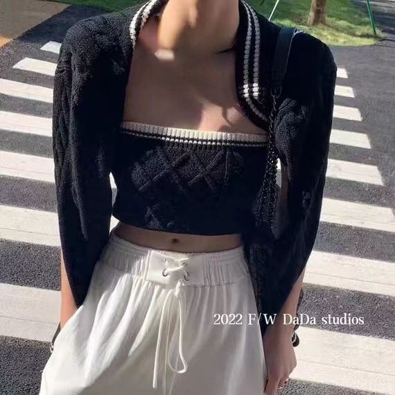 タンクトップキャミソールホワイトツイストセーターニット2点セットクロップドカーディガンセーターY2k服セクシープルコート春 スプリング 春物