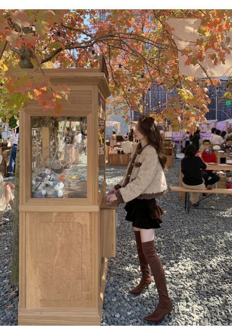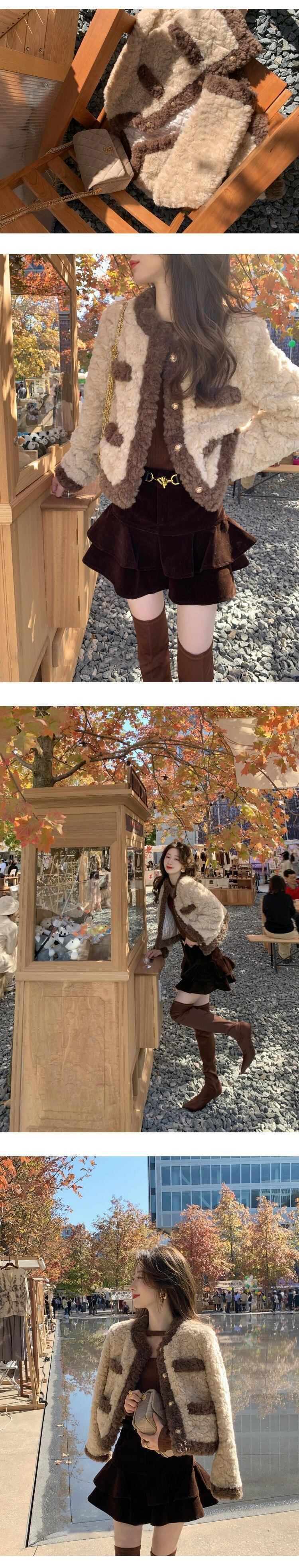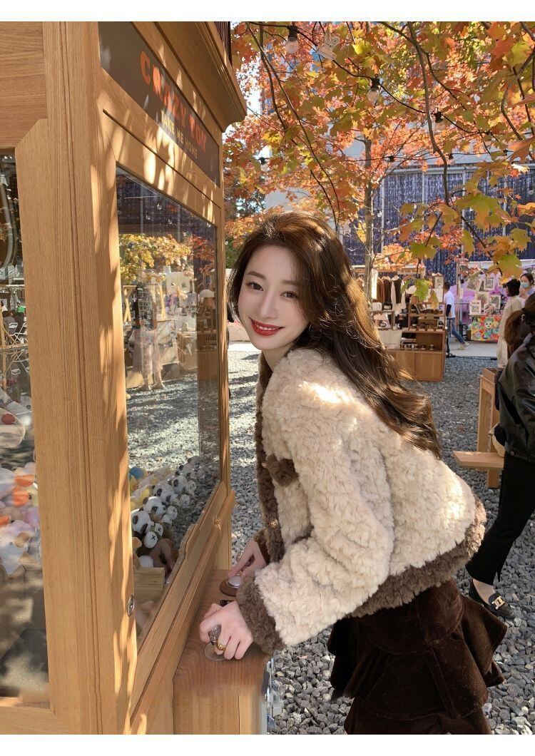 ファー & フェイクファーラムウールジャケットチャケータ丈カーディガン秋服ショートジャケットトップ オータム 秋物