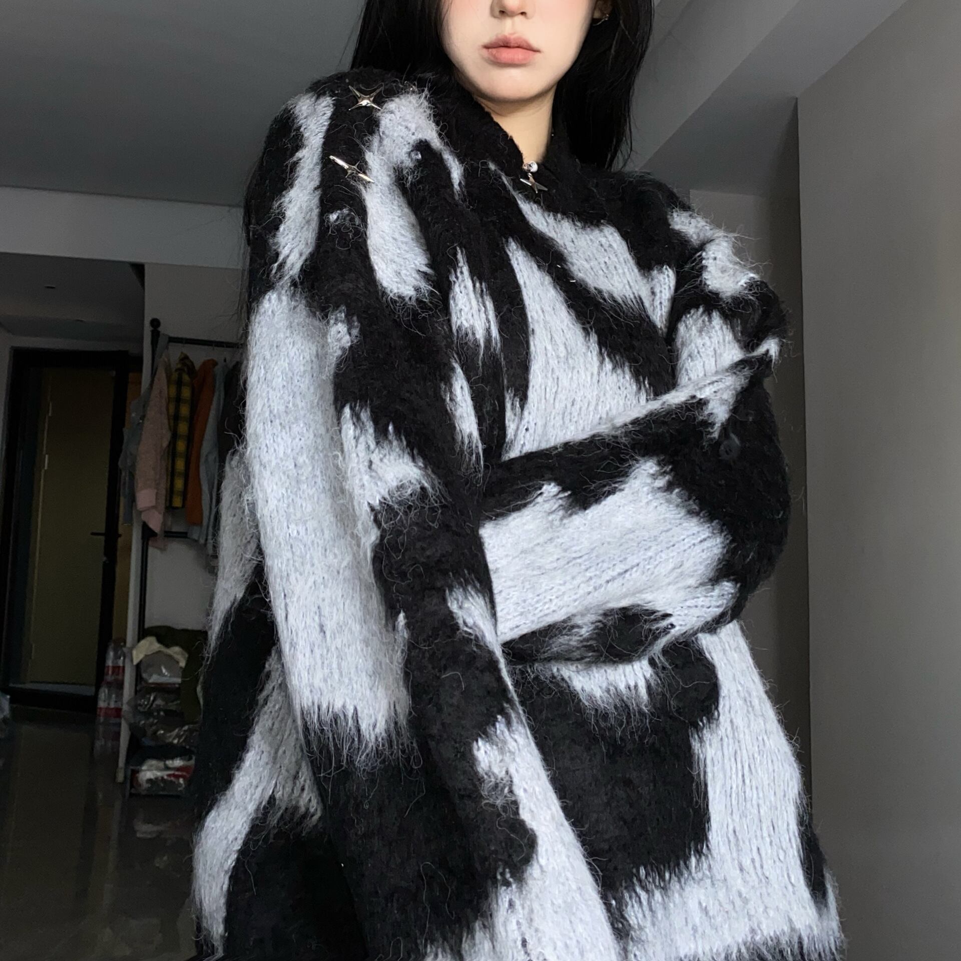 ルーズラウンドネックプルオーバー ese スタイルセーターニットレディーストップ特大セーターセータージャンパー Y2k コントラストブルー Oネック