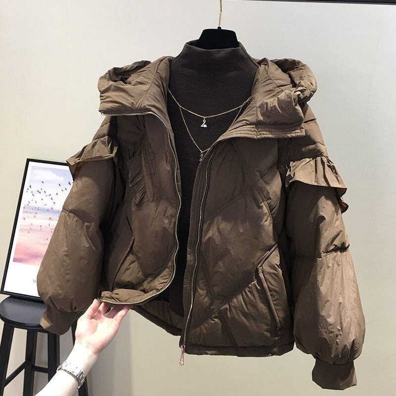 フリルレッドダウンコートオーバーコート綿パッド入り冬コートフード付きパーカー黒フグジャケットジップ Y2k ブラック コットン ウィンター 冬物