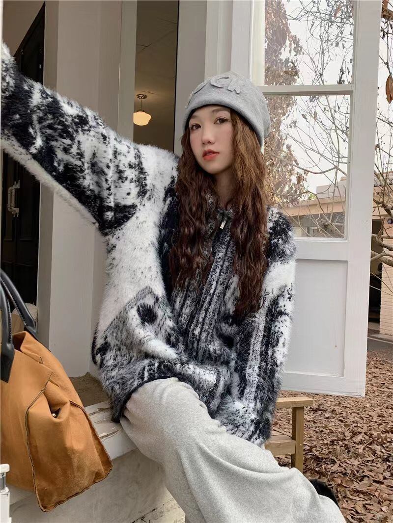 防水ミンクニットカーディガンカップルジッパージャケットプリント Jaquetas 冬ジャケットタイダイコートウール ウィンター 冬物