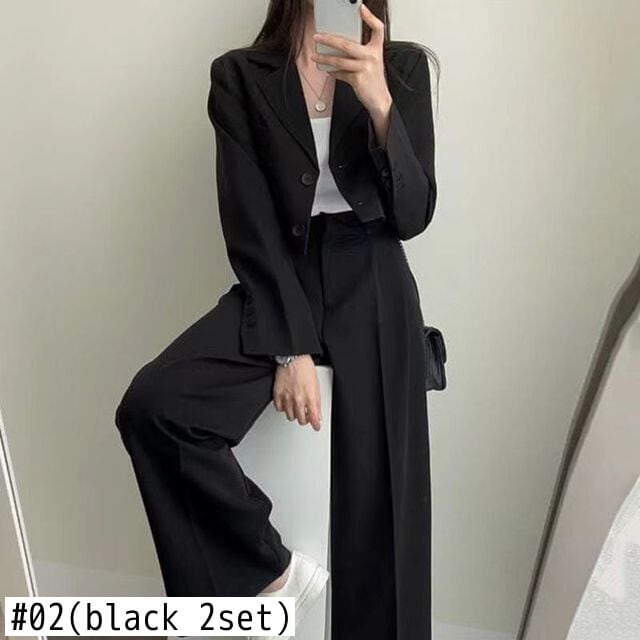 パンツスーツ ブラック テーラード パンツ ノッチ 2 ボタン ブレザー ショート コート ウエスト Y2k 2 点セット レディース 衣装 レッド