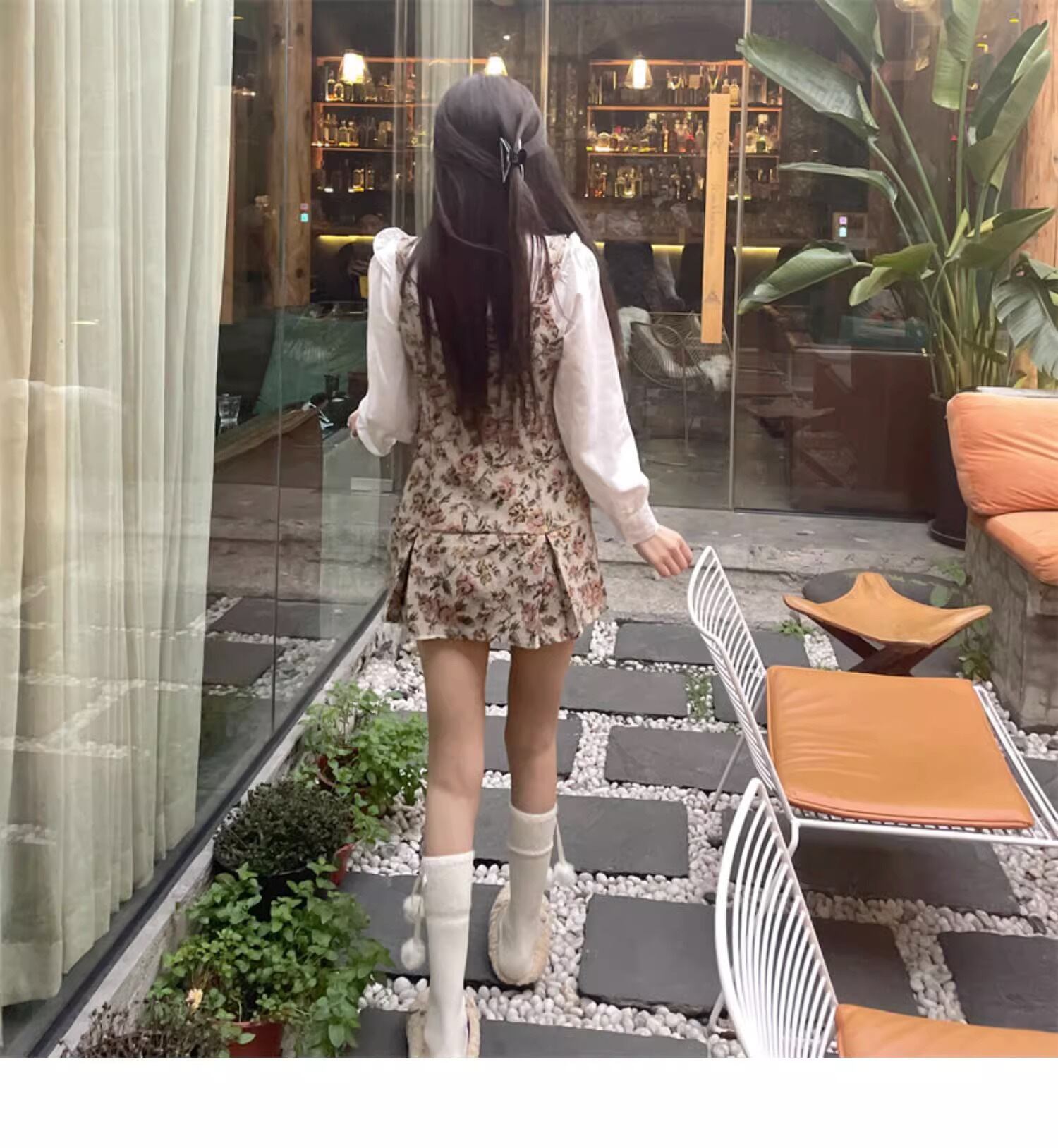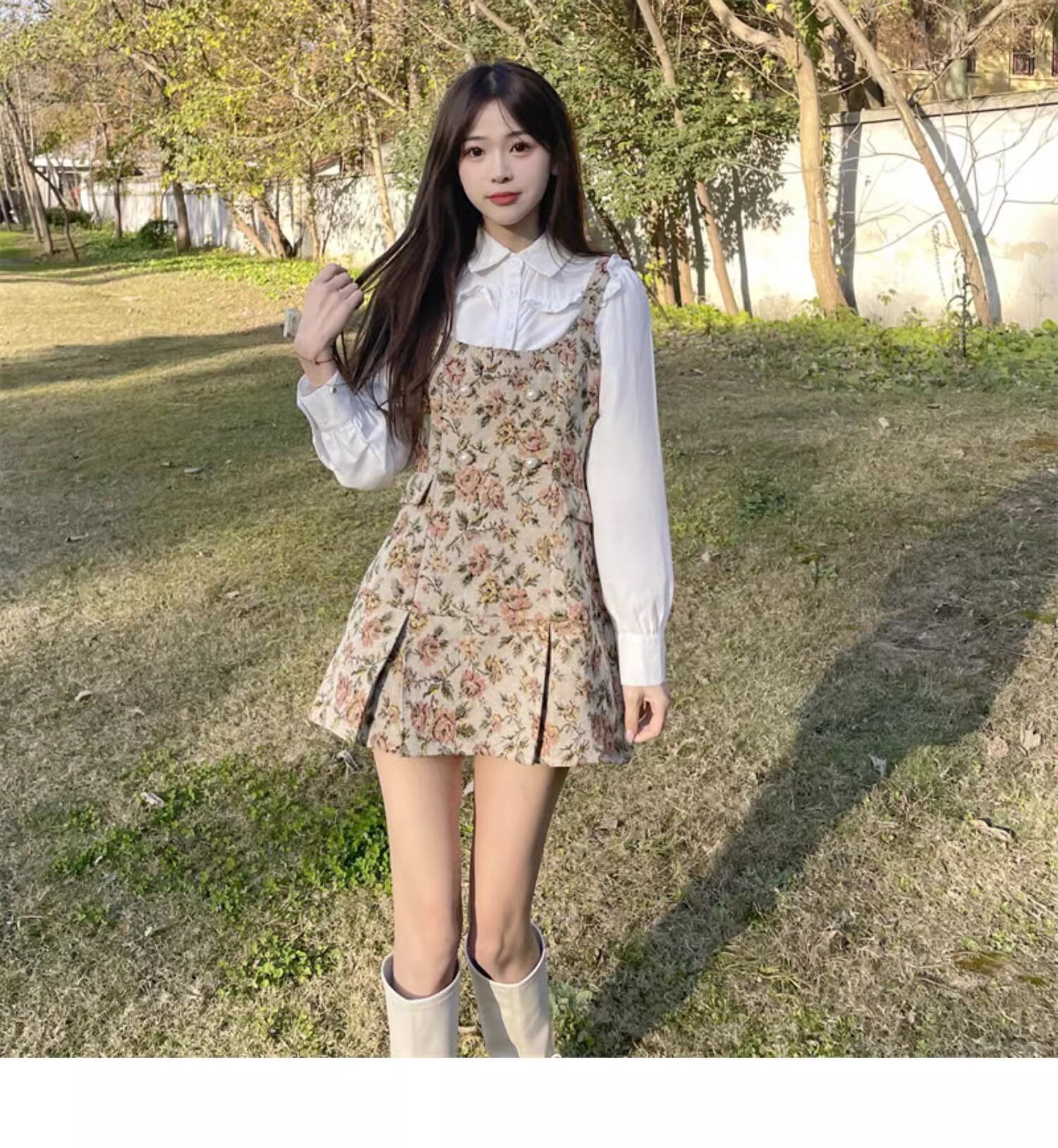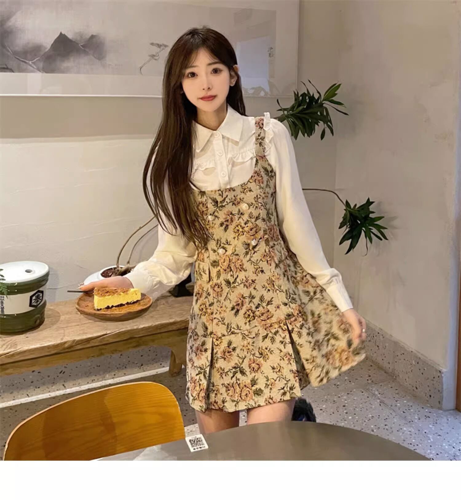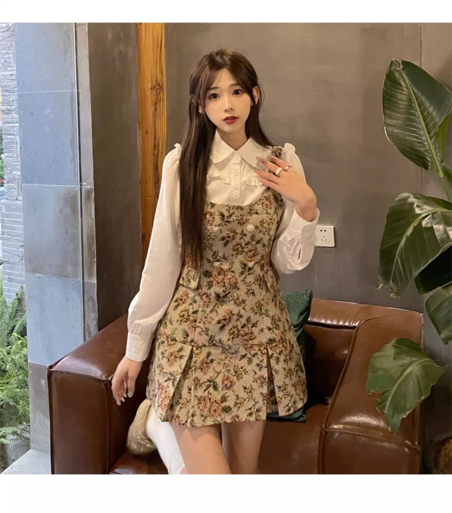 ボディコン Vestidos エス パラ ショート フェイク ツーピース長袖花柄ドレス フリル白シャツ セクシー ドレス ロング ホワイト