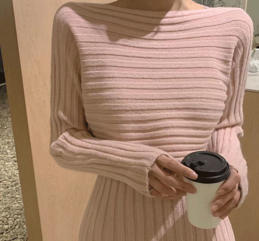 オフショルダーニットセータートップ 2 ピースセットスリムフィット臀部ヒップドレス 2 ピースセットレディース衣装 ソリッドカラー