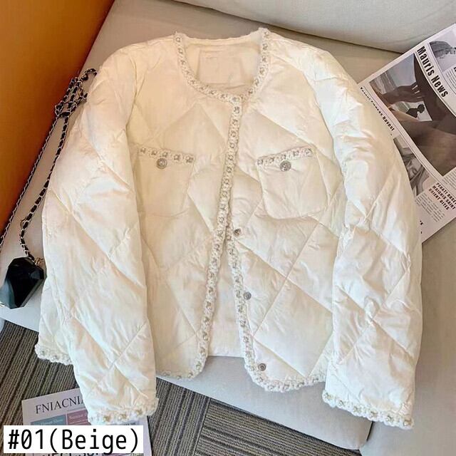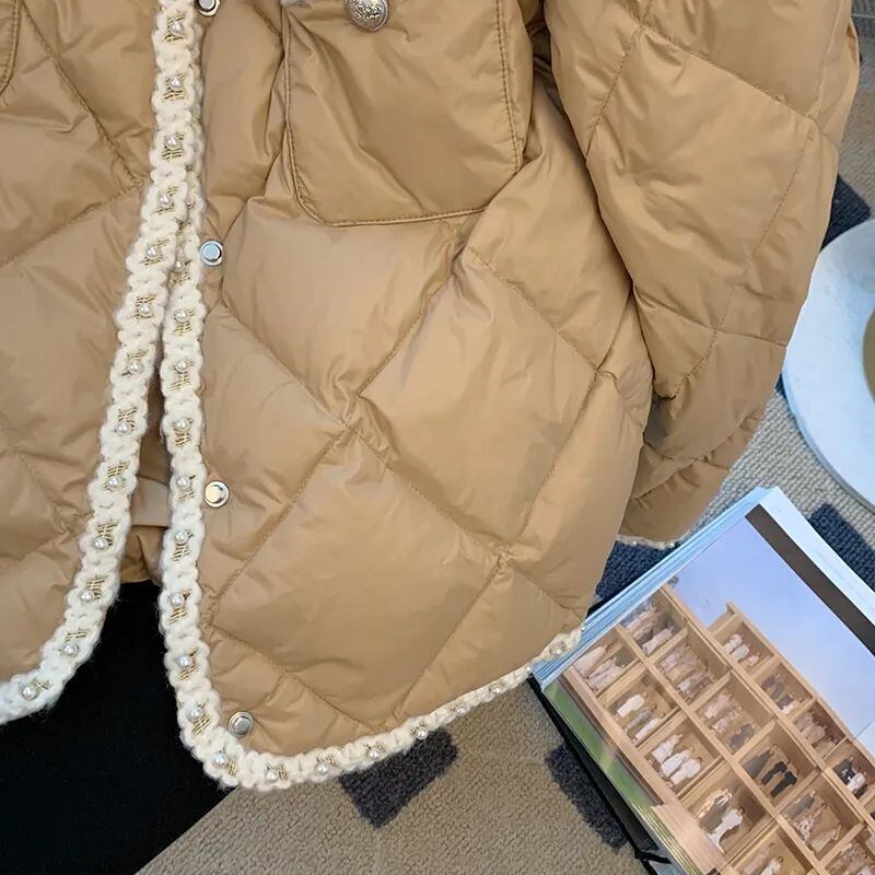綿パッド入りルーズアーガイルパーカービーズ秋冬ジャケットシックダウンコート生き抜くトップ V ネックチェック柄コート コットン オータム 秋物 ウィンター 冬物 Vネック
