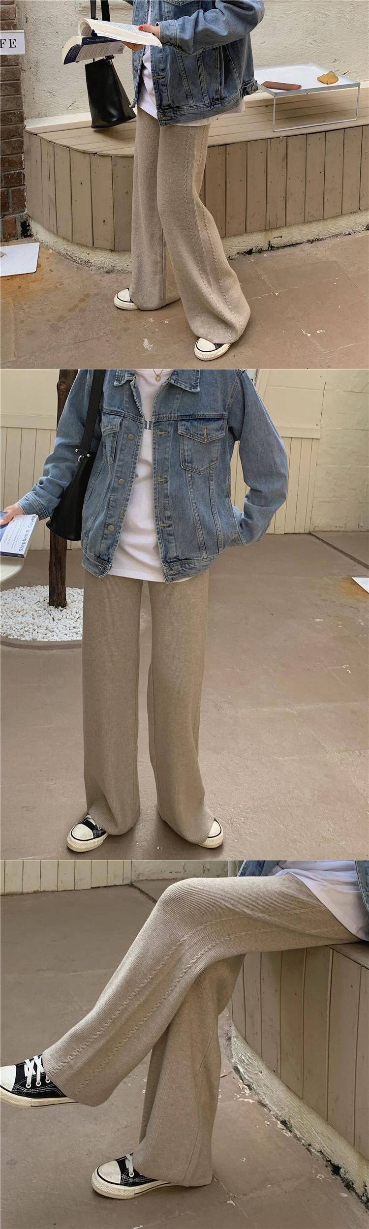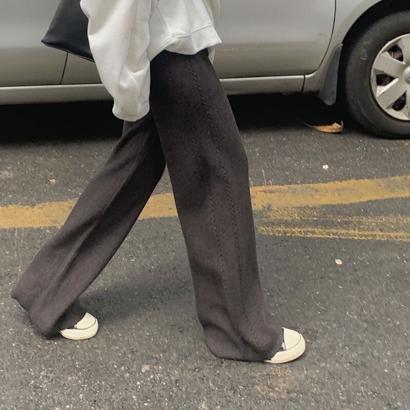 ウエストストレートツイストニットパンツだぶだぶパンツ Pantalones デワイドレッグ黒スウェットパンツ厚い ブラック ワイドパンツ