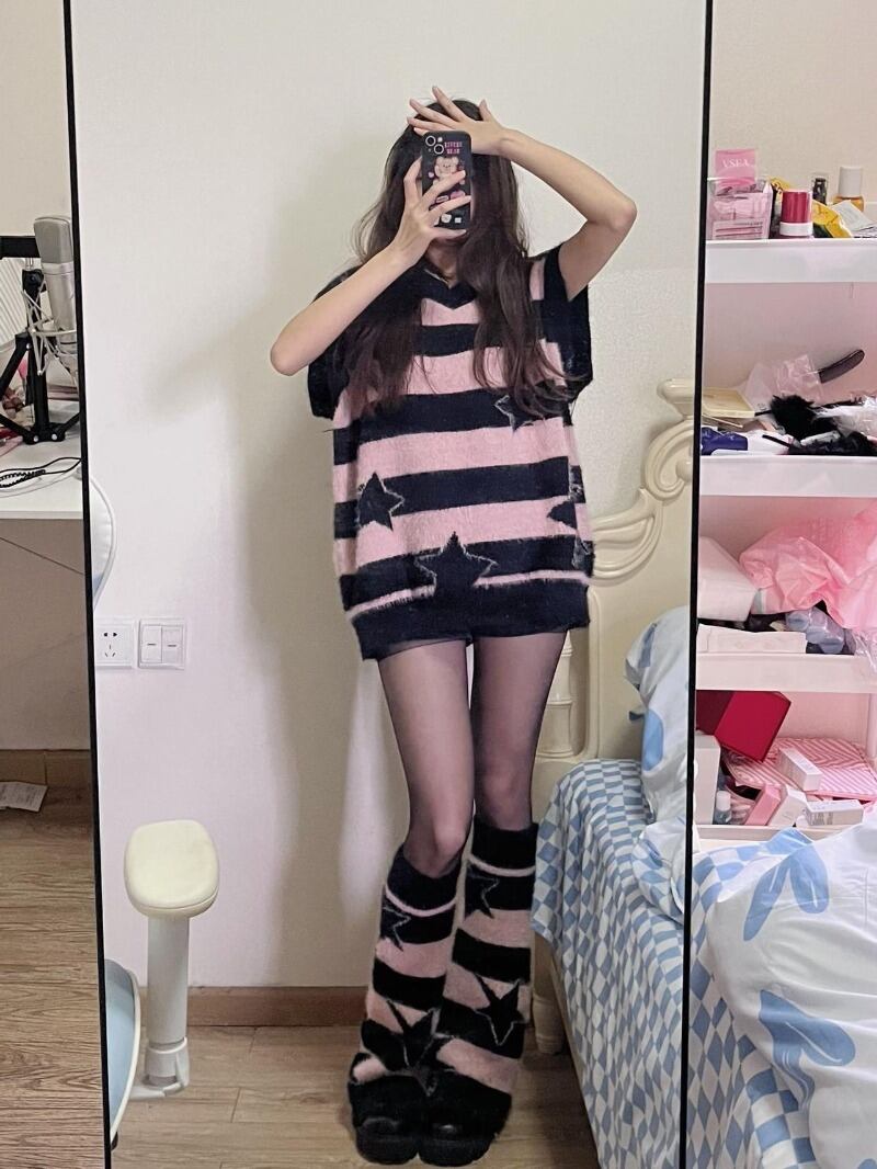 パンクゴシックロングセーター毛皮ニットセーター Y2K ストリートルース中空アウト取り外し可能プルオーバー原宿セクシートップス かわいい