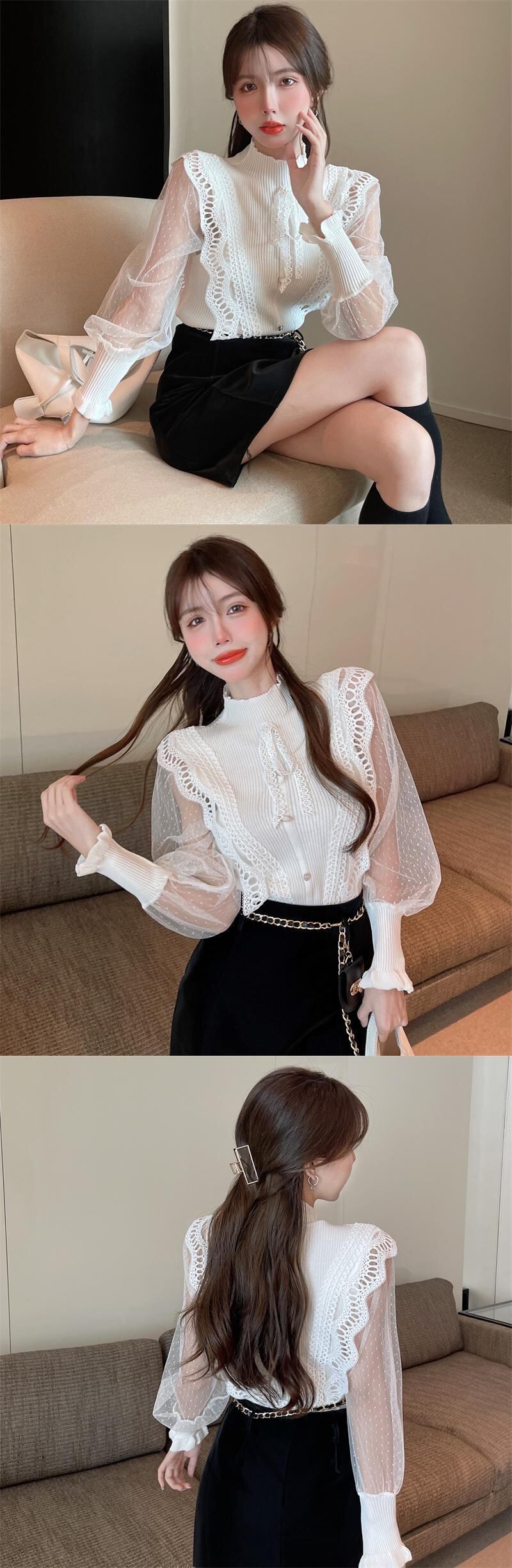 ホワイトボウ菌シャツグランジクロップトップ Ropa グラフィック T シャツボトムニットシフォンシャツスリムパフ黒水玉シャツ ブラック リボン Tシャツ