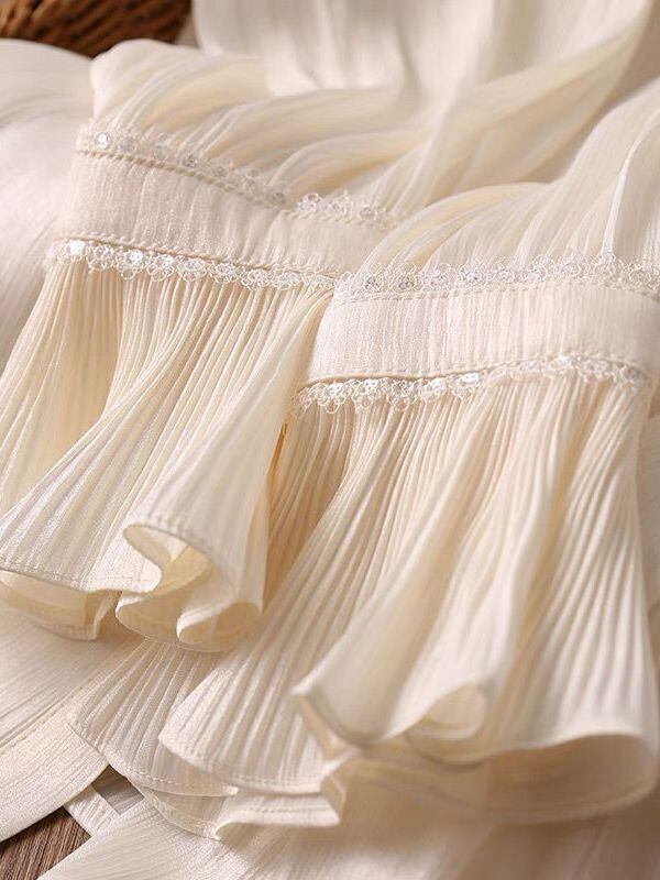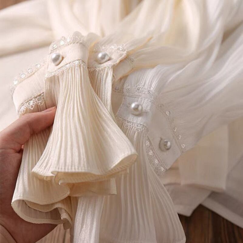 s es プリーツトランペットスリーブメッシュトップス気質シャツオフィスレディシャツシックシャツブラウス 会社 学校 通勤や通学にも