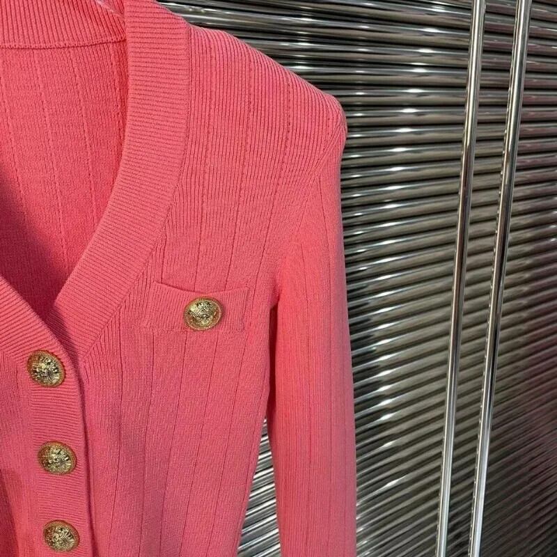 春甘いかわいいボタン V ネック ストレッチ ショルダー パッド アイス ニット カーディガン セーター トップ 大人ガーリー スウィート キュート カジュアル スプリング 春物 Vネック シルク