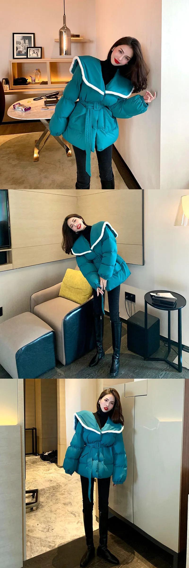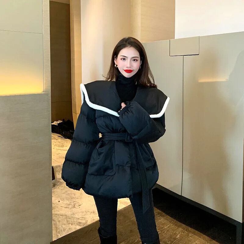 ベルトウエストルーズダウンコート冬コートフグジャケットパフスリーブコットントップ生き抜く黒パーカー Chaquetas ブラック ウィンター 冬物 ハーネス