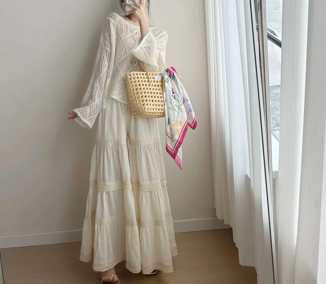 アウト日焼け止めニットトップワイドレッグコットンリネンフレアパンツ 2 ピースセットトラックスーツスカートパンツセットスーツ レッド ワイドパンツ