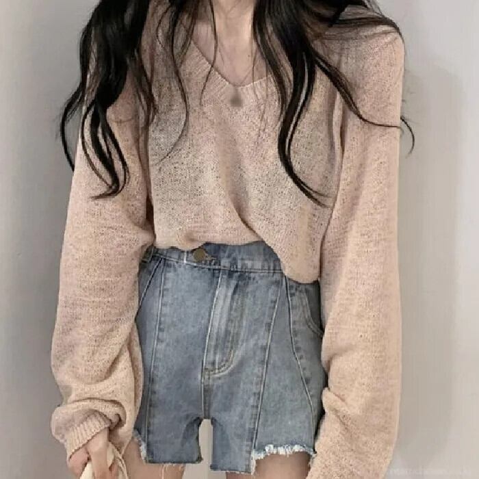 メッシュセータープルオーバージャンパーニットトップスホワイトアウトセクシーストリートシックスタイルプルトップス