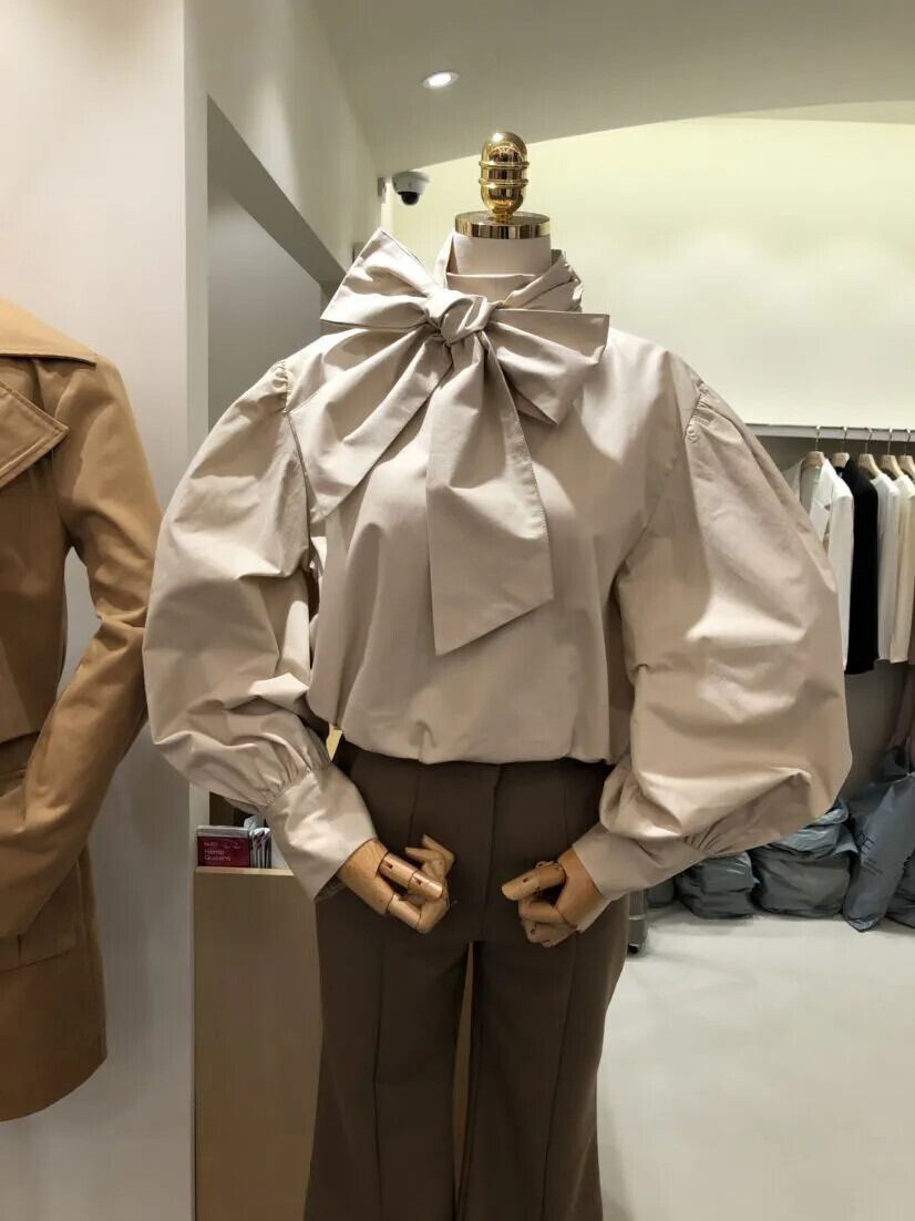 白シャツスタイル気質蝶ネクタイルーズスリム長袖シャツトップスレトロ黒シャツ ロング ホワイト ブラック リボン