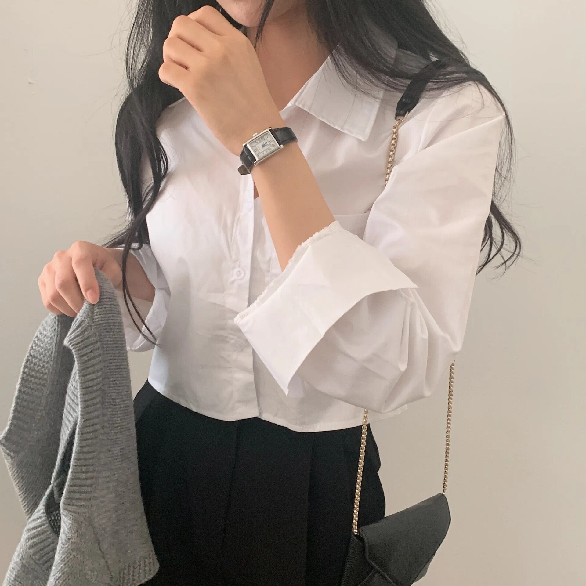 De Moda ホワイトニッチ長袖シンプルルーズ気質ラペルシャツシャツトップスオフィスレディ ロング 会社 学校 通勤や通学にも