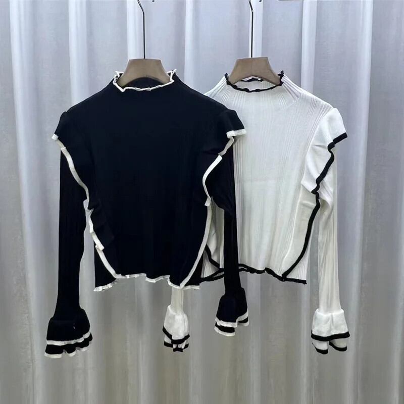 シャツ美的グランジ菌セーター Y2k グラフィック Tシャツニット袖黒 Tシャツ底スリム ブラック