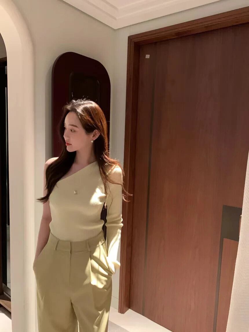 シャツ不規則オフショルダー 1 スリムフィット長袖ニットトップ Y2k 黒、白セクシー Tシャツセーターグランジ ロング ホワイト ブラック