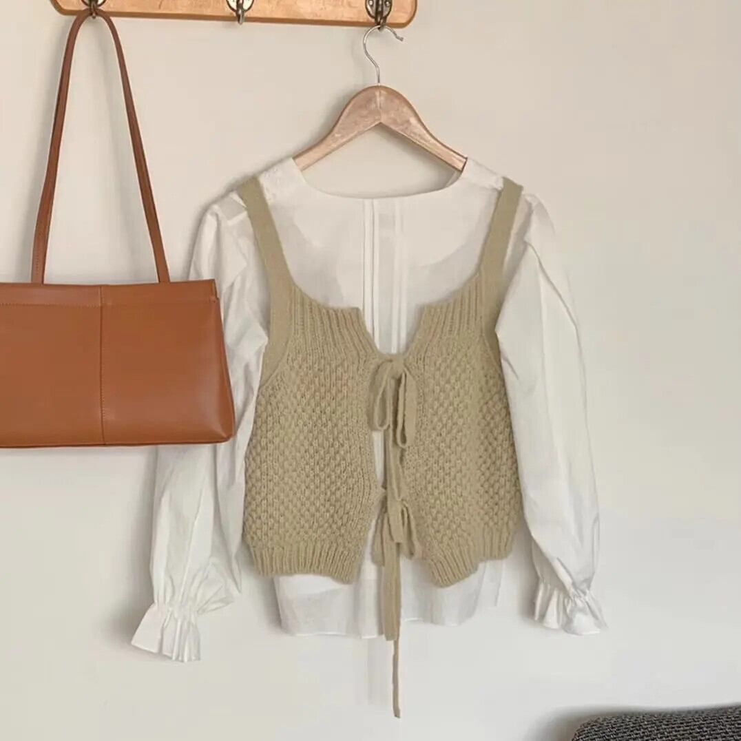 タンクトップ キャミソール Chalecos パラニットベスト ルーズクロップトップ ソリッド Y2k ツイストジャージ セーターベスト バック包帯 ソリッドカラー