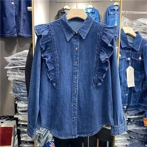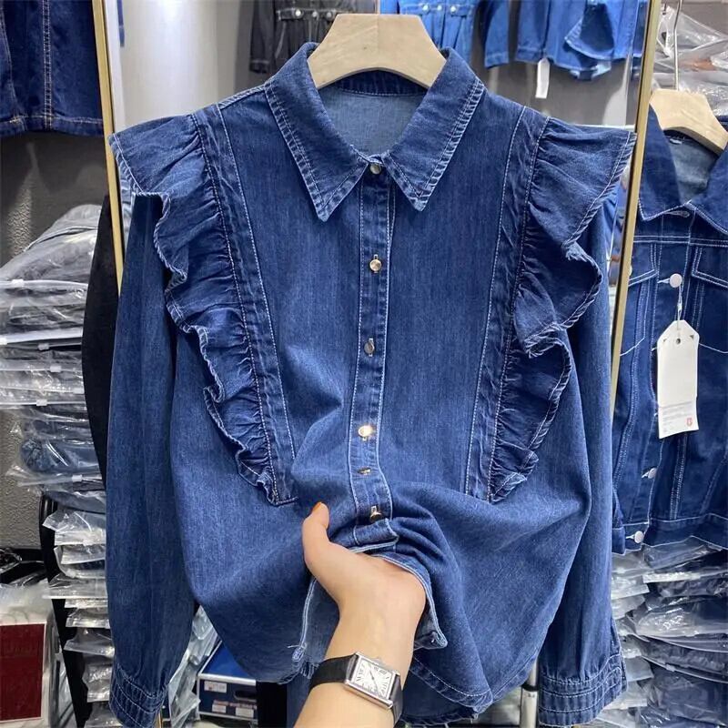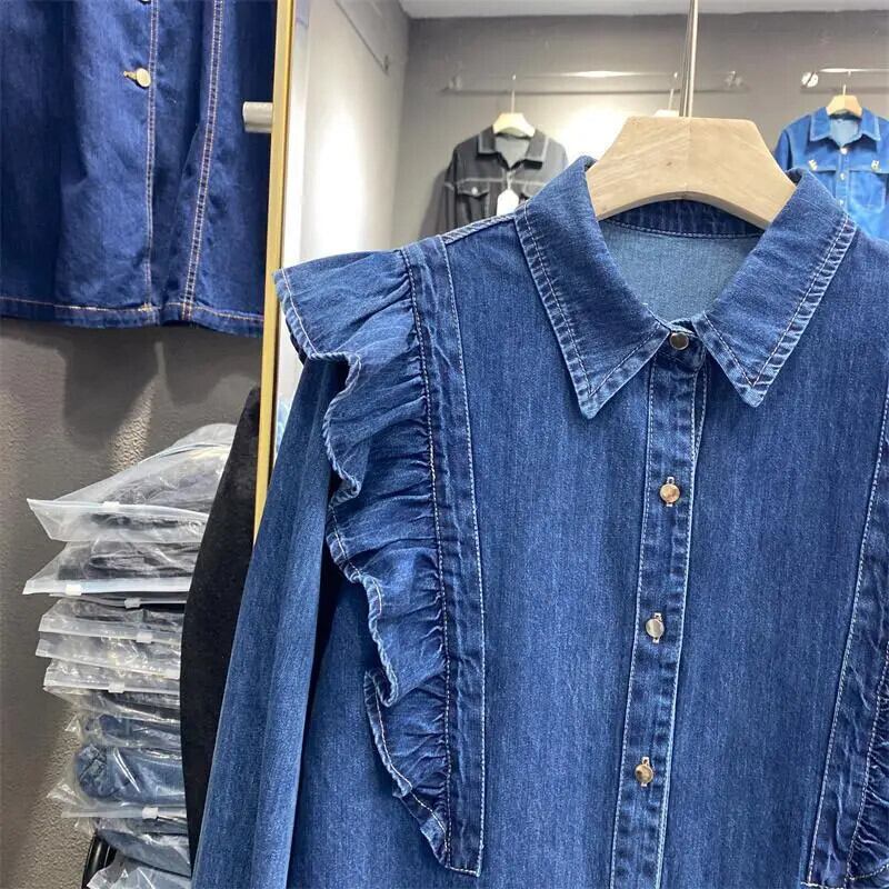 コートスタイルデニムシャツレディース春秋ボトムトップセンススモール長袖シャツブルーサジーンズコート ロング スプリング 春物 オータム 秋物