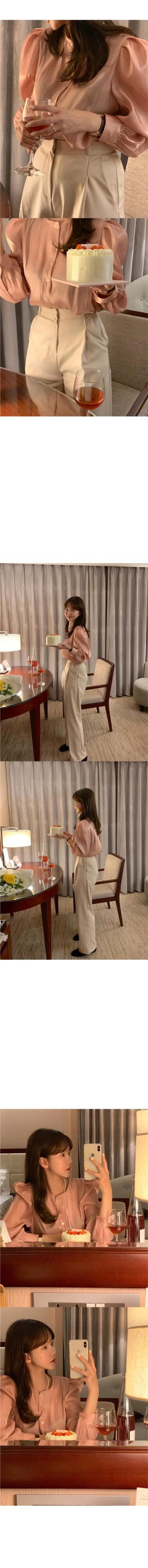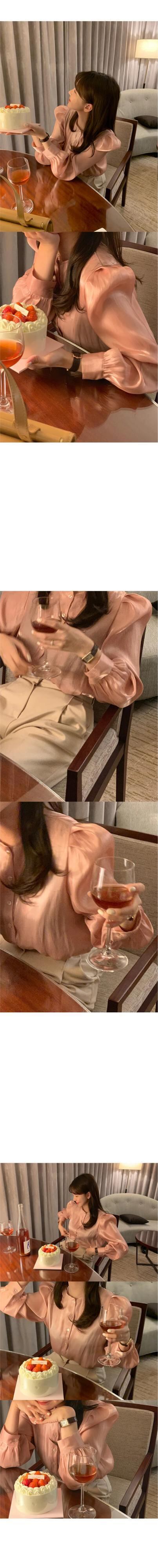 s es ルーズバブルスリーブピンクシフォンシャツシックトップスクロップブラウスシャツ