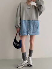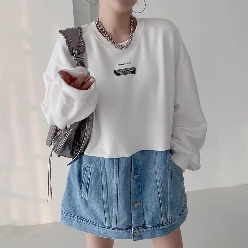 Y2k Kpop パーカー美的トップス Sudaderas ストリートパッチワークデニムトレーナー偽 2 Ropa