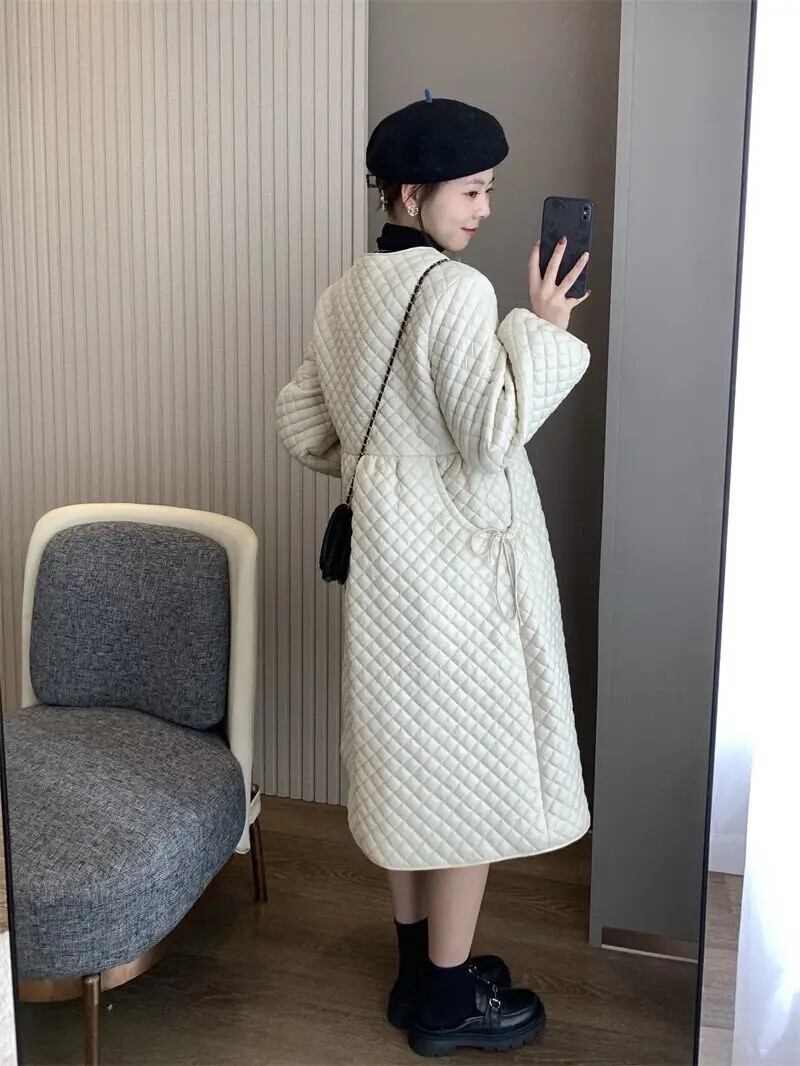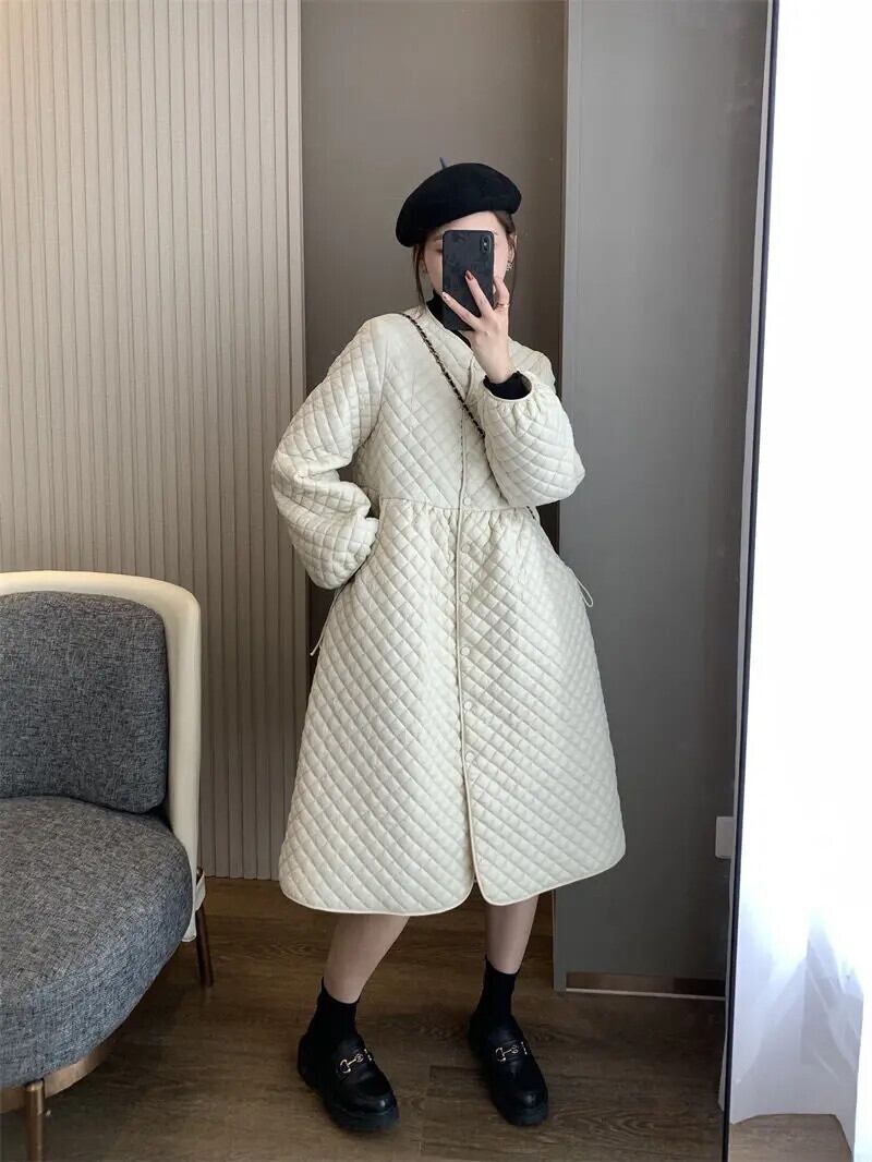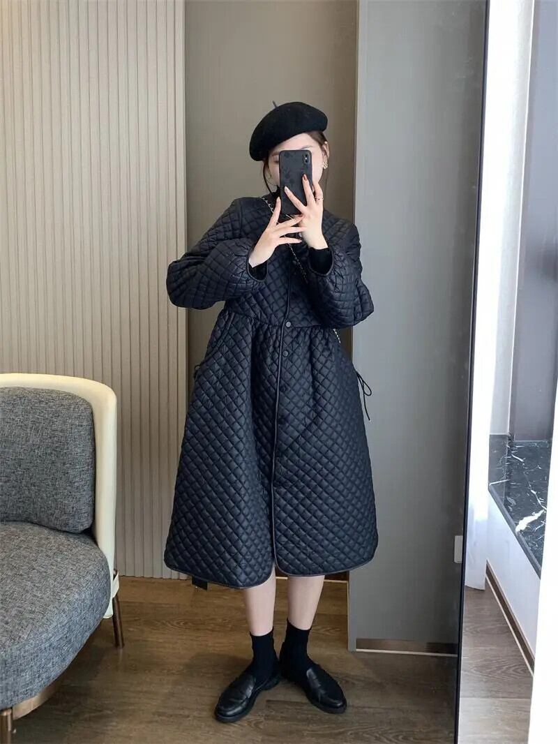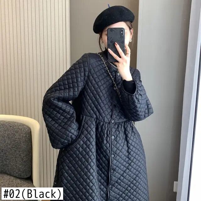 ルーズシングルブレストコートアーガイルパーカードレスキルティングコットン黒パーカーフグジャケット秋冬 Ropa ブラック オータム 秋物 ウィンター 冬物