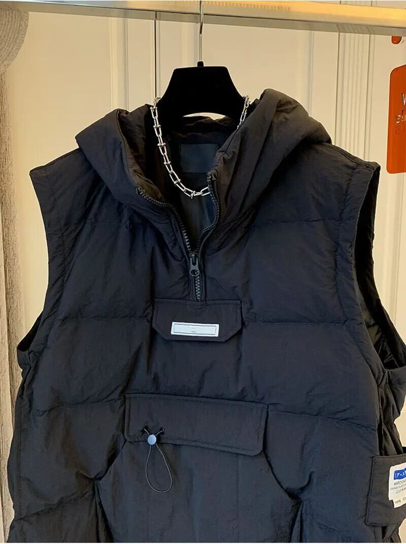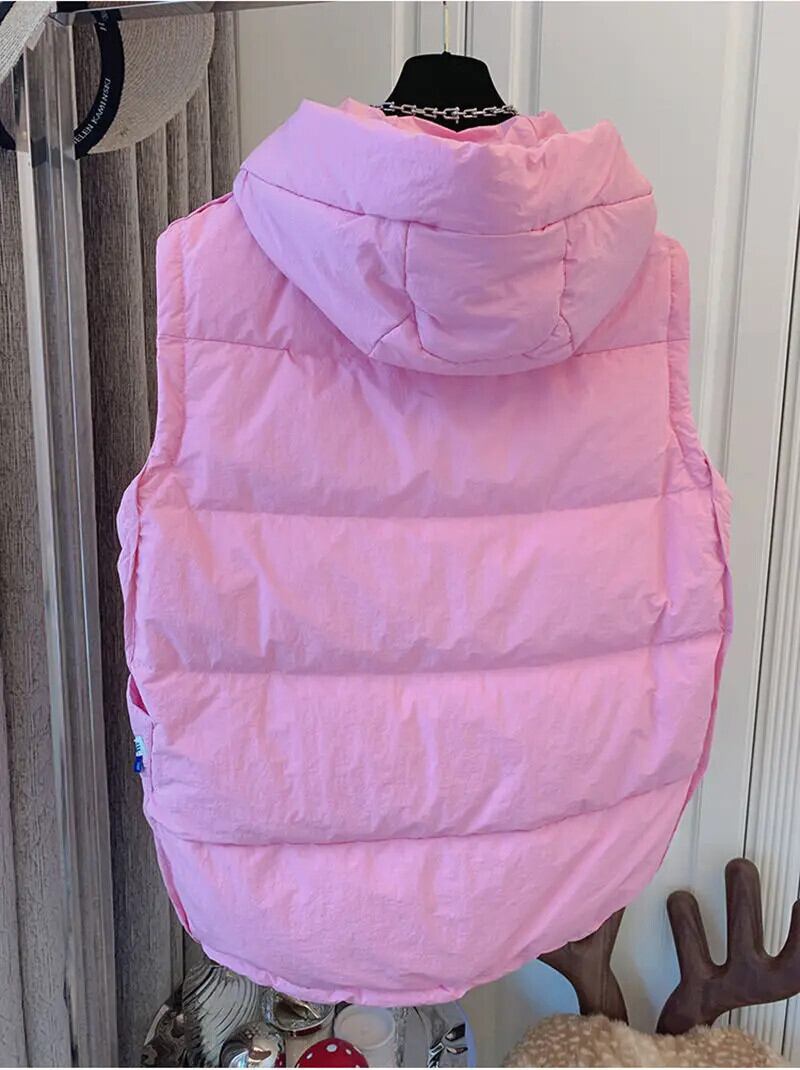 秋キルティング綿入り黒ダウンコートフード付きパーカージャケットベスト Colete チョッキトップス Chaleco ブラック コットン オータム 秋物
