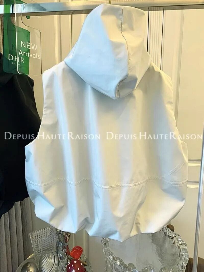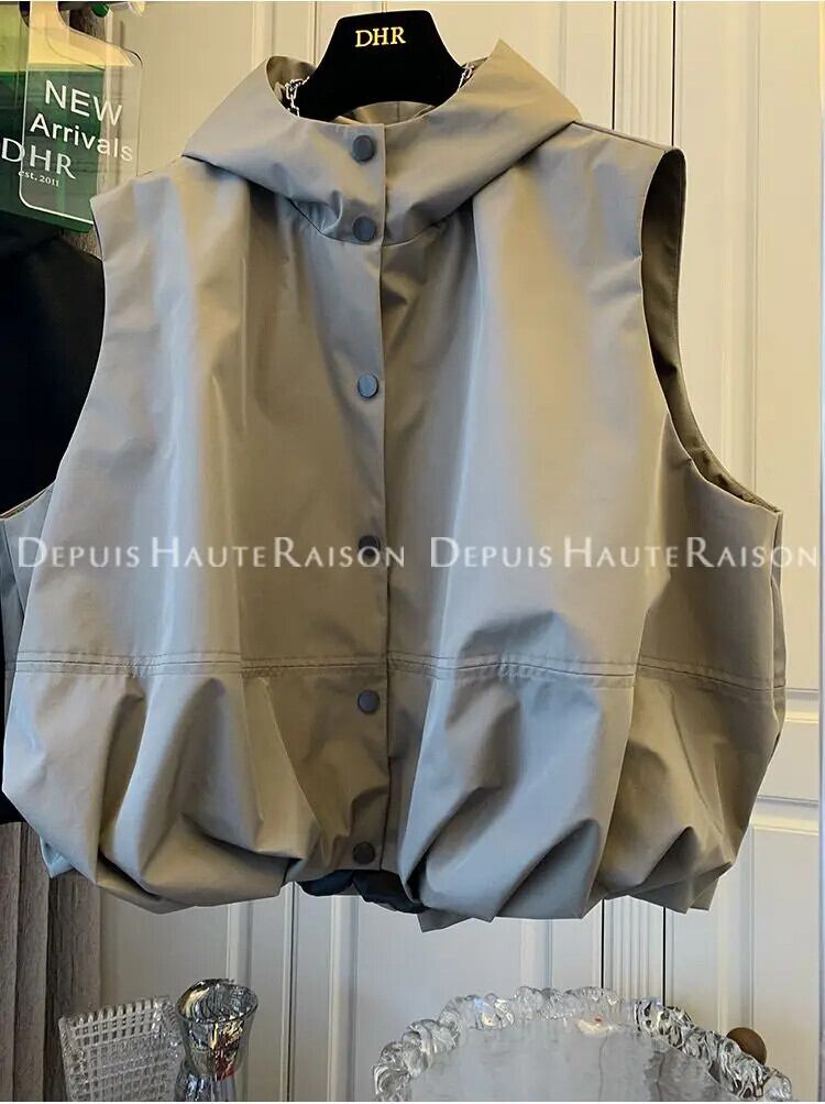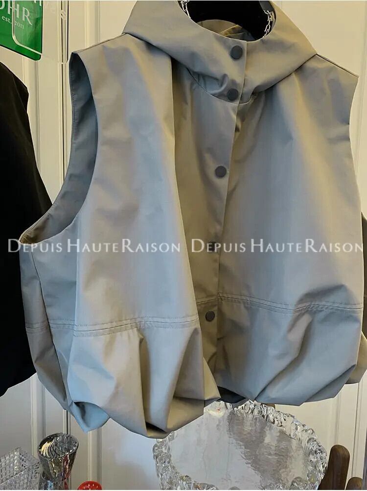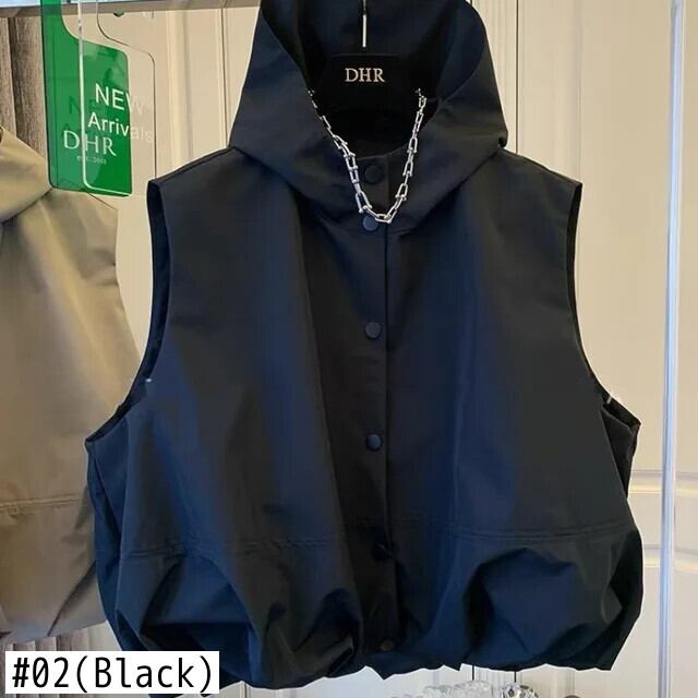 作物トレンチトップス黒チョッキ Chalecos パラルーズベストシングルブレストノースリーブフード付きジャケット ブラック