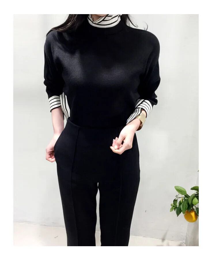 Y2k セーターラペル黒、白ネックスリーブ包帯コントラストカラープルオーバーストライプセーターニットトップシャツ ホワイト ブラック