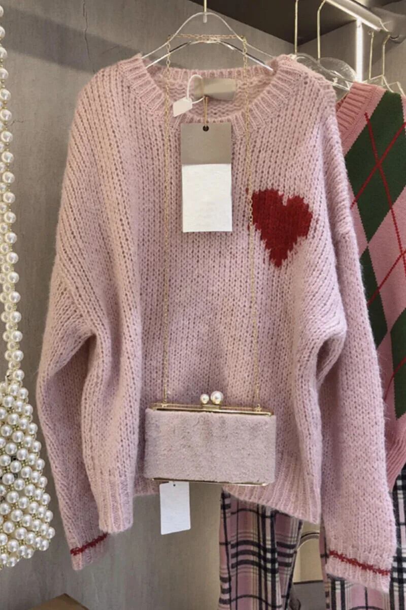 美学グランジ セーター ピンク ラブ ハート セーター Y2k トップ プルオーバー オーバーサイズ セーター スリーブ ニット