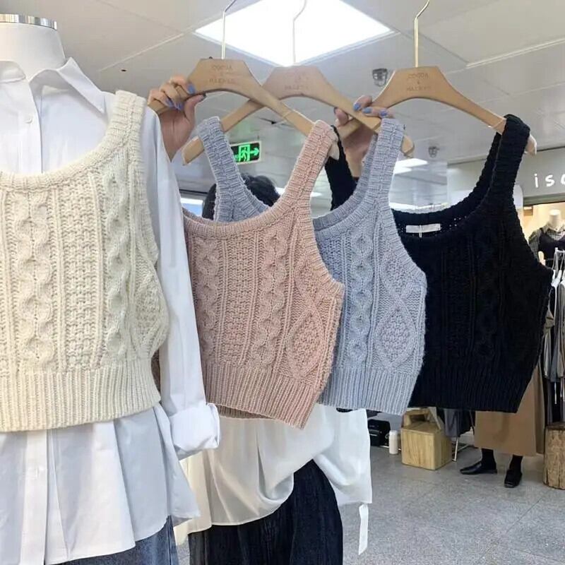 生き抜く トップ ジャージ Chalecos パラ クロップ ツイスト セーター ベスト ブラック グレー タンク キャミソール ニット ベスト トップス V ネック Vネック