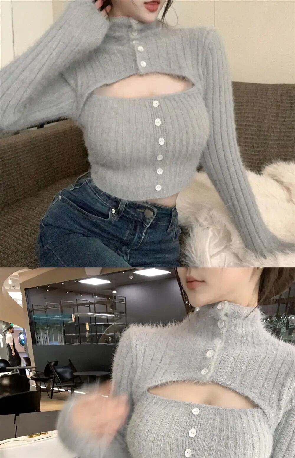 ミンクカシミヤタートルネックセータージャンパーY2kセーターデクロップトップスアウトニットセーターピンク ソリッドカラー