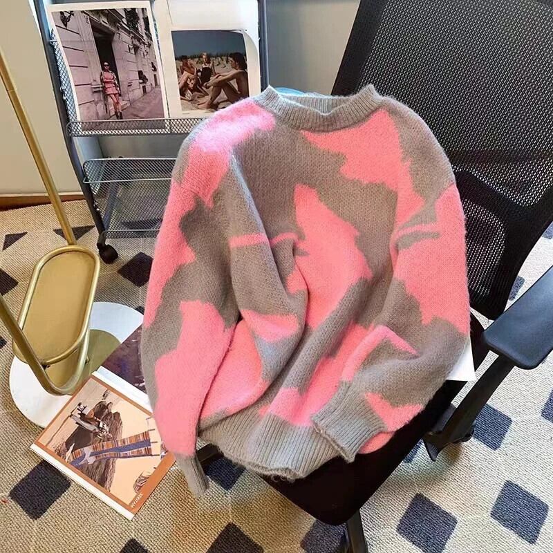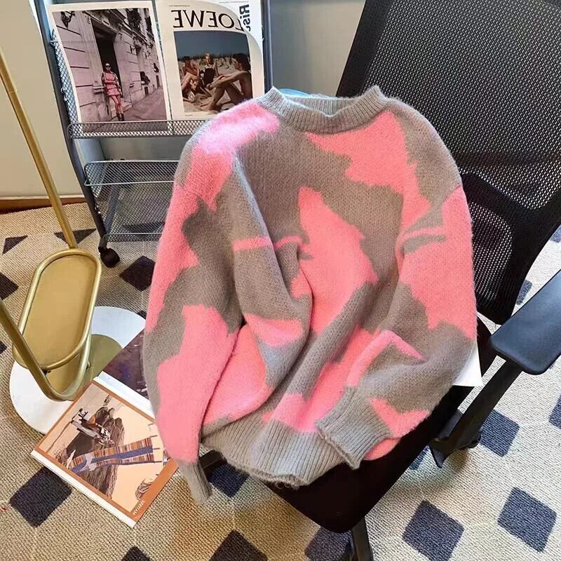 レトロ怠惰スタイル黒と白コントラスト絞り染めセーター Y2k 美学グランジ セーター デ ニット トップ ジャンパー ホワイト ブラック