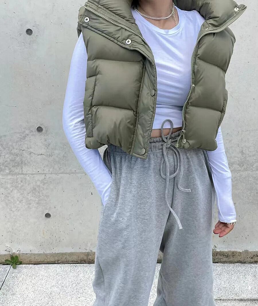スタンド黒キルティングジャケット冬ルーズパーカーコートベルト付き生き抜くオフィス暖かい綿フグジャケットベスト ブラック コットン ウィンター 冬物 ハーネス 会社 学校 通勤や通学にも