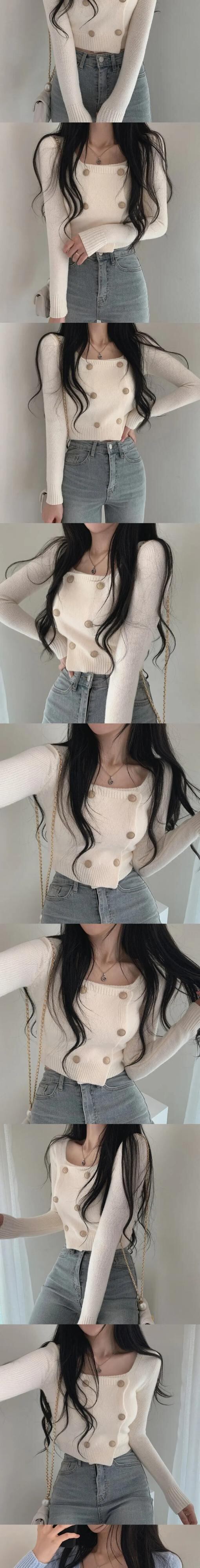 クロップドプルオーバースリム長袖ニットスタイルインセクシーシックボタンプル ロング