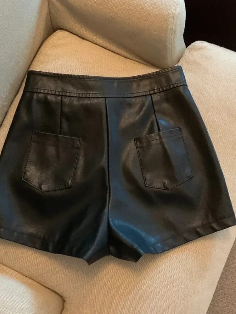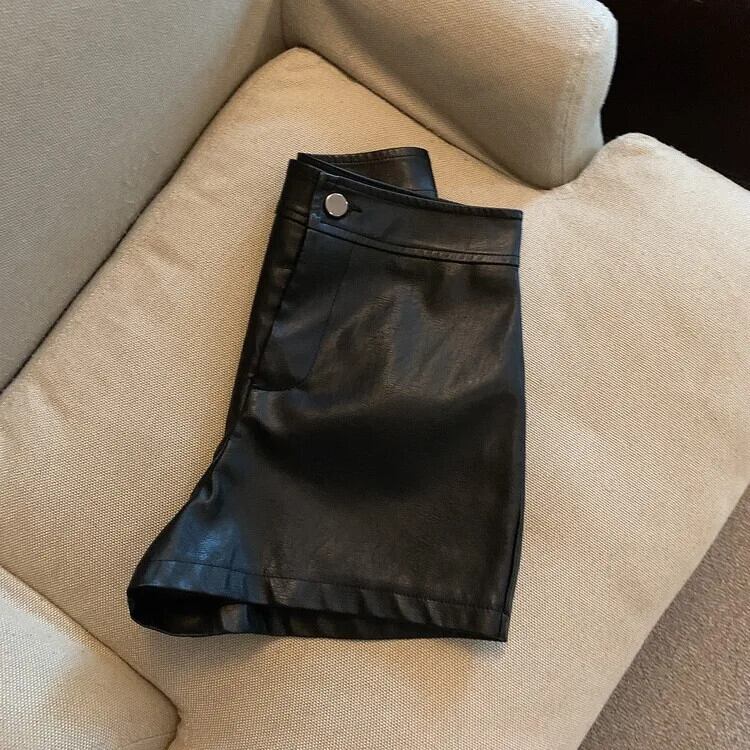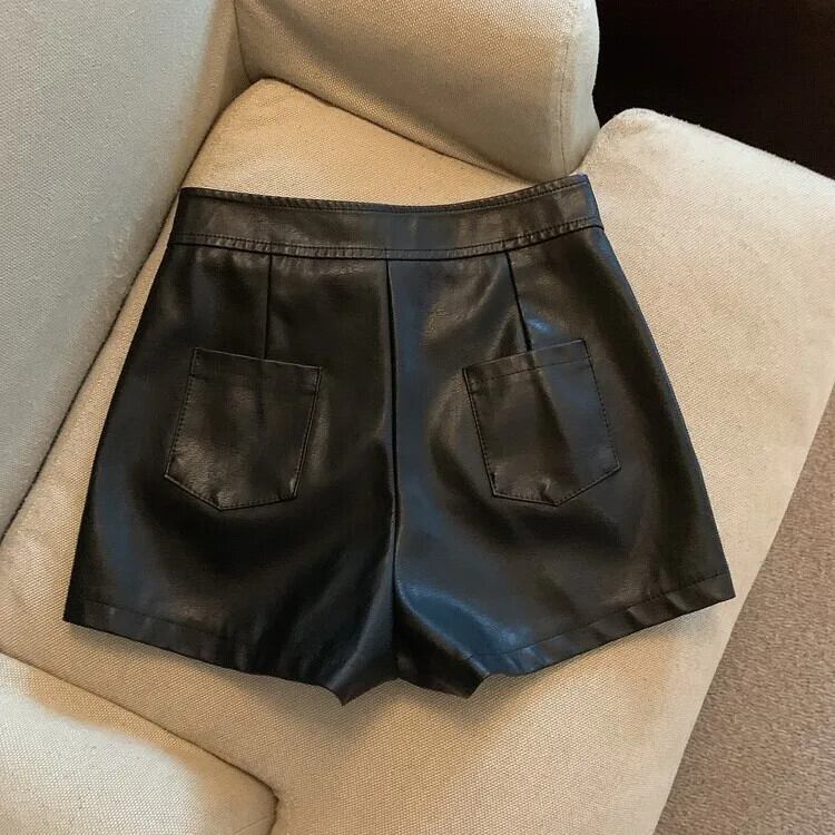 シックサイドポケットフェイクレザーショーツウエストジッパーフライショートパンツ黒ショーツ Feminino ブラック ブルマー ファー