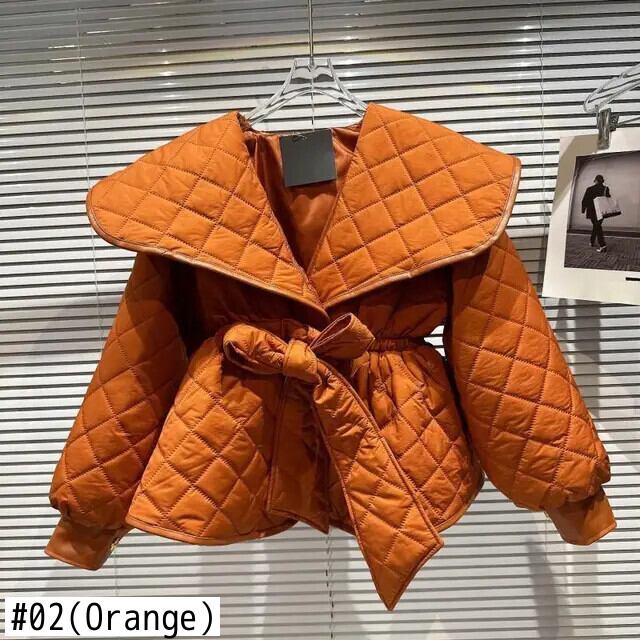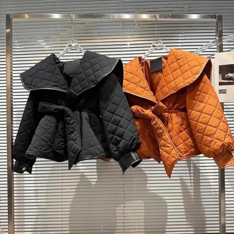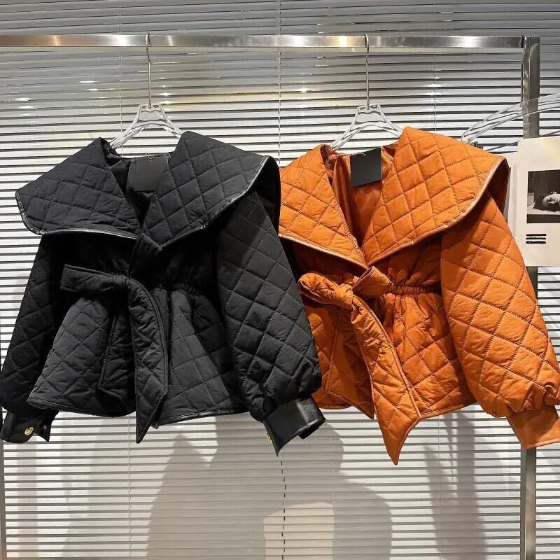 冬アーガイルジャケット Chaquetas レトロ黒パーカーフグジャケット Jaqueta ベルトウエストキルティング綿コート弓包帯 ブラック リボン コットン ウィンター 冬物 ハーネス